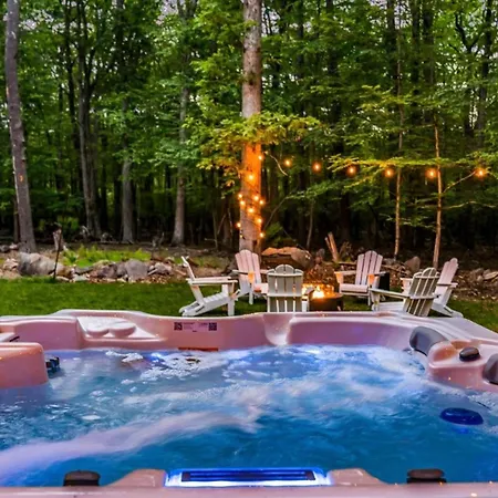 Situada 7 km de Great Wolf Lodge Waterpark, a Dine Outdoors, Dream Indoors 5Br Vila East Stroudsburg inclui piscina privada bem como banheira quente e sauna para relaxar.